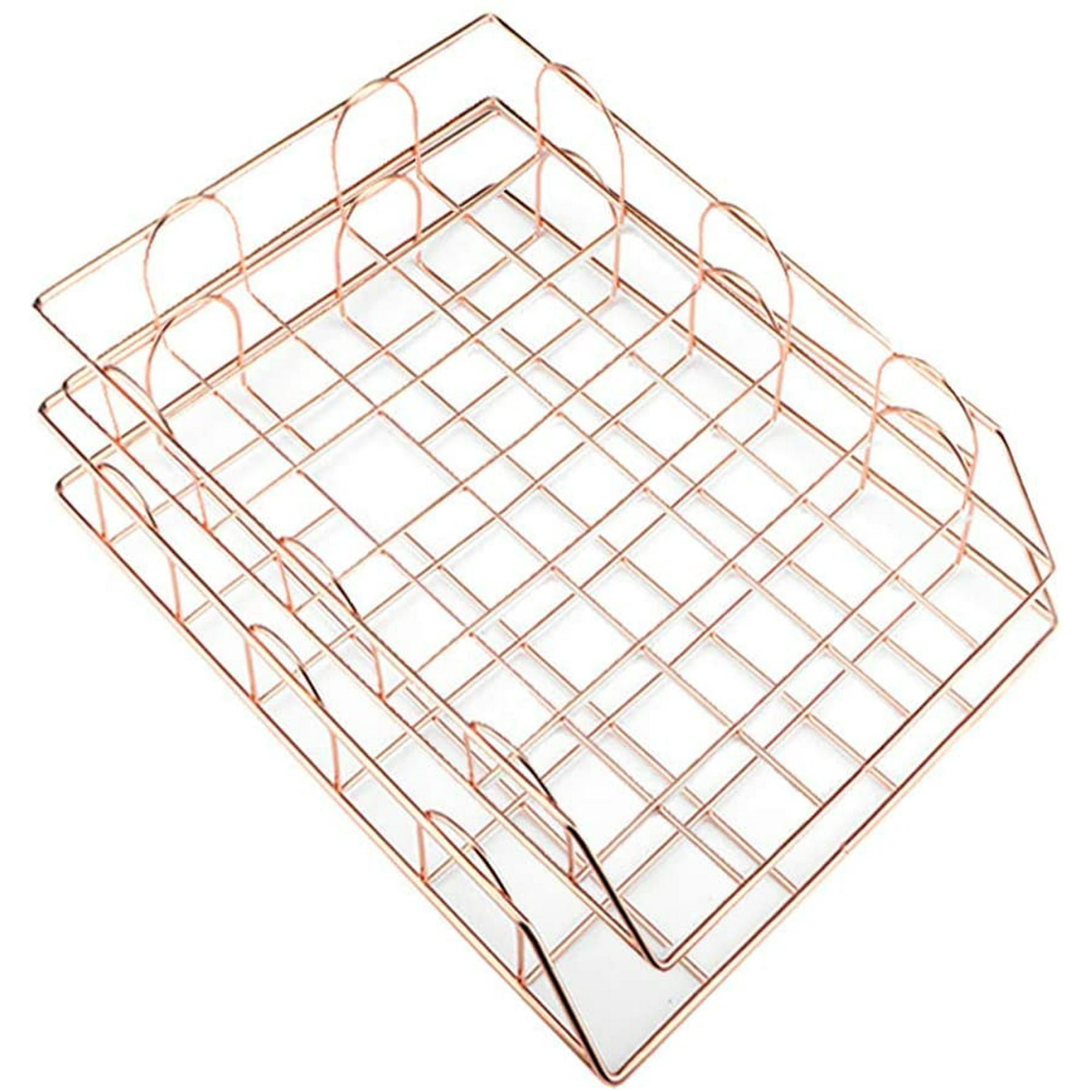 Amazon Com Z Plinrise Stackable Letter Tray 4 Tier Desk File Organizer For Mails Magazines Documents And Accessories Wire Paper Tray For Home School And Office Rose Gold Office Products